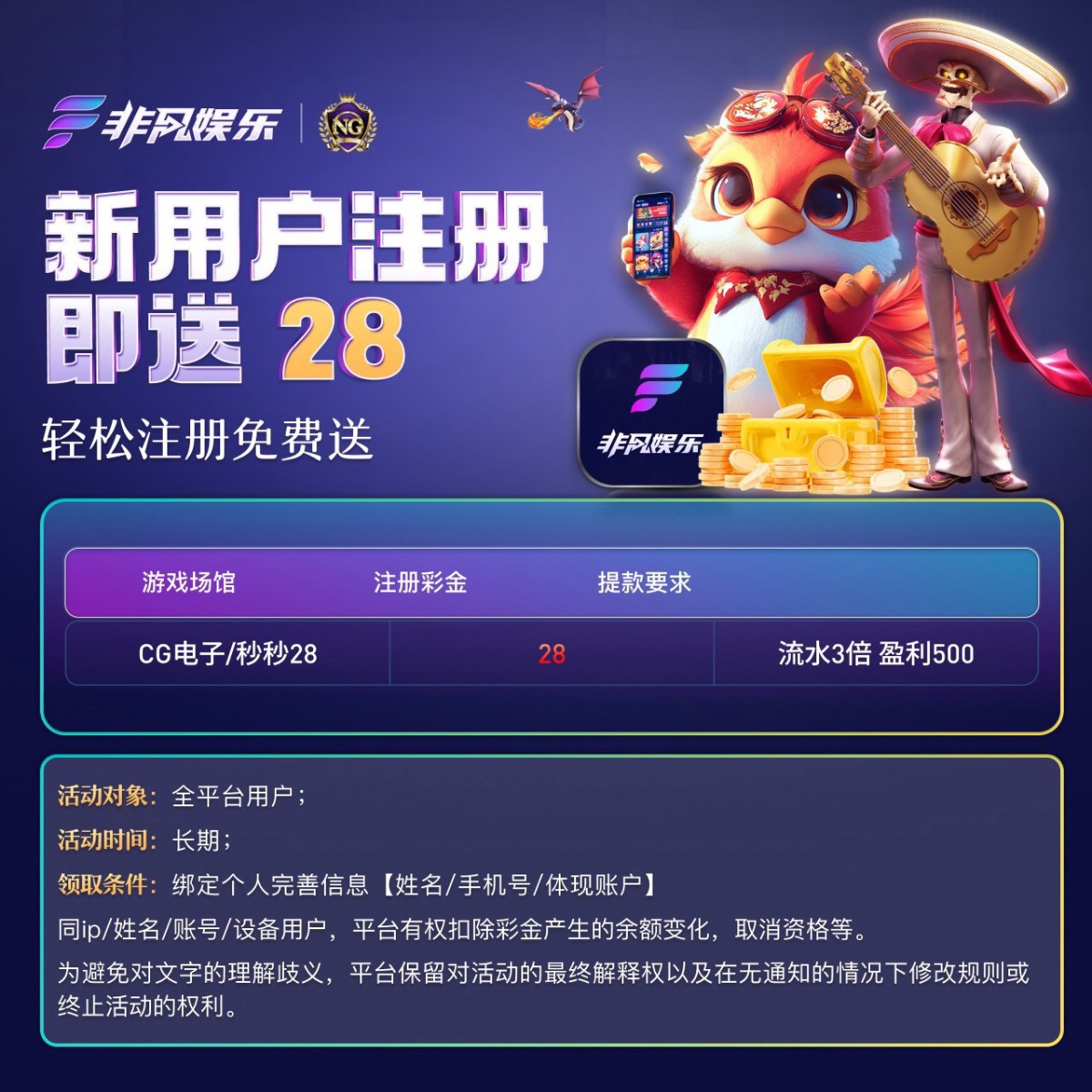 注册送28:注册后绑定提款/姓名手机号自动到账 禁多ip/多设备等 否则封号概不处理